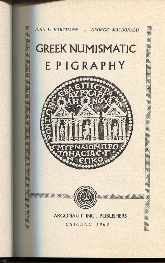 MACDONALD G. – HARTMANN J. – Greek numismatic epigraphy. Chicago, 1969. Pp. 92, ill. nel testo. ril. ed. buono stato.