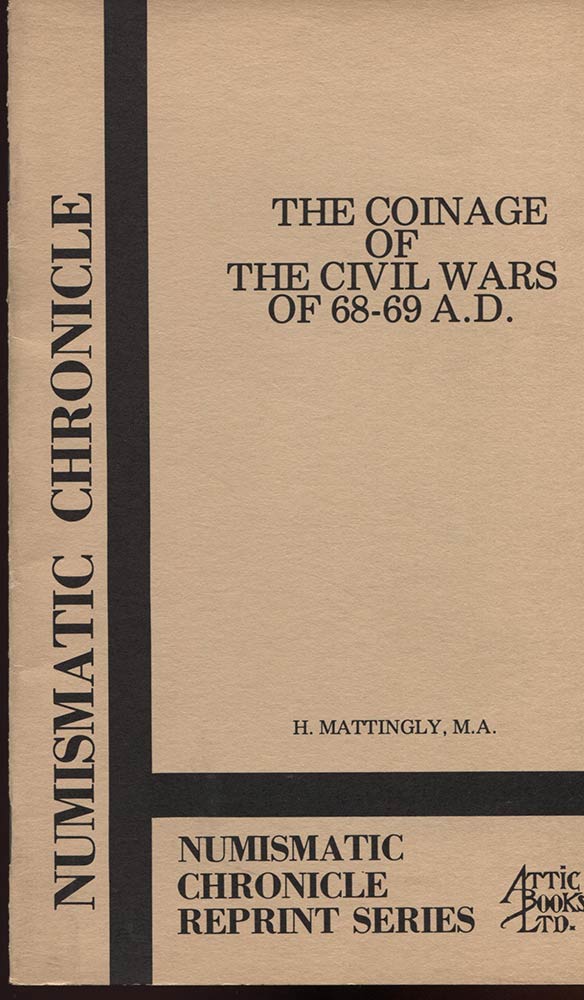 MATTINGLY H. – The coinage of the civil wars of 68 – 69 A.D. New York, 1977. Pp. 3o, tavv. 2. Ril. ed. Buono stato.