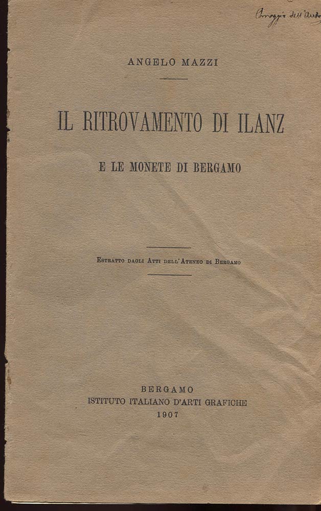 Lotto 2014 | MAZZI A. – Il Ritrovamento di Ilanz e le monete di Bergamo. Bergamo, 1907. Pp. 16. Ril. ed. Buono stato, molto raro.