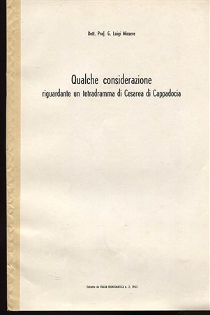 MISSERE G. L. – Qualche considerazione riguardante un Tetradramma di Cesarea di Cappadoccia. Mantova, 1963. Pp. 5, ill. nel testo. ril. editoriale, buono stato.