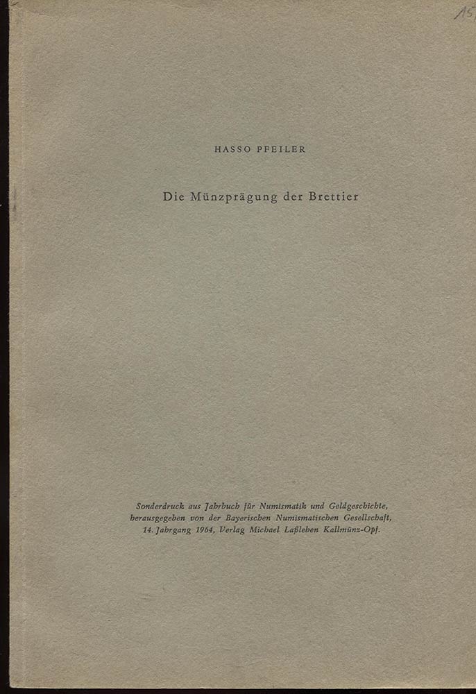 PFEILLER H. – Die munzpragung der Brettier. Munchen, 1964. Pp. 7 – 50, tavv. 3. Ril. Ed. Buono stato, importante e raro.