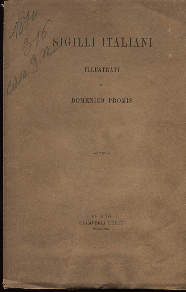 Lotto 2067 | PROMIS D. – Sigilli italiani. Torino, 1870. Pp. 53, tavv. 4. Ril. Ed. Buono stato, raro.