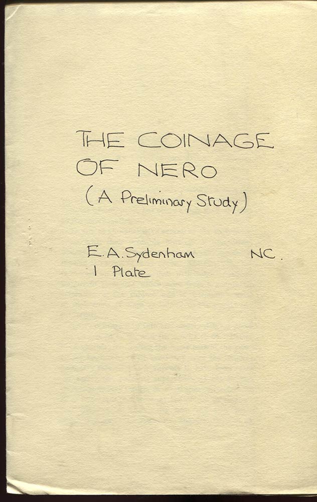 SYDENHAM E. A. – The coinage of Nero; a preliminary study. London s.d. pp. 13 – 36, tavv. 1. Ril muta, buono stato, raro.