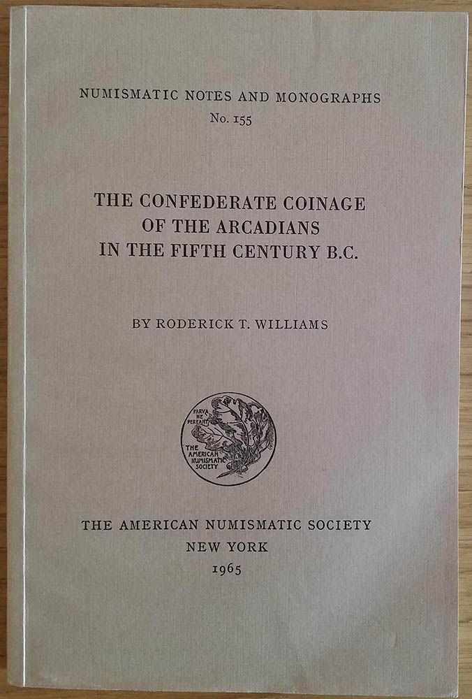Williams R.T. The Confederate Coinage of the Arcadians in the Fifth Century B.C. Numismatic Notes and Monograph No. 155. New York The American Numismatic Society 1965. Brossura ed. pp. 141, tavv. XIV in b/n. Buono stato