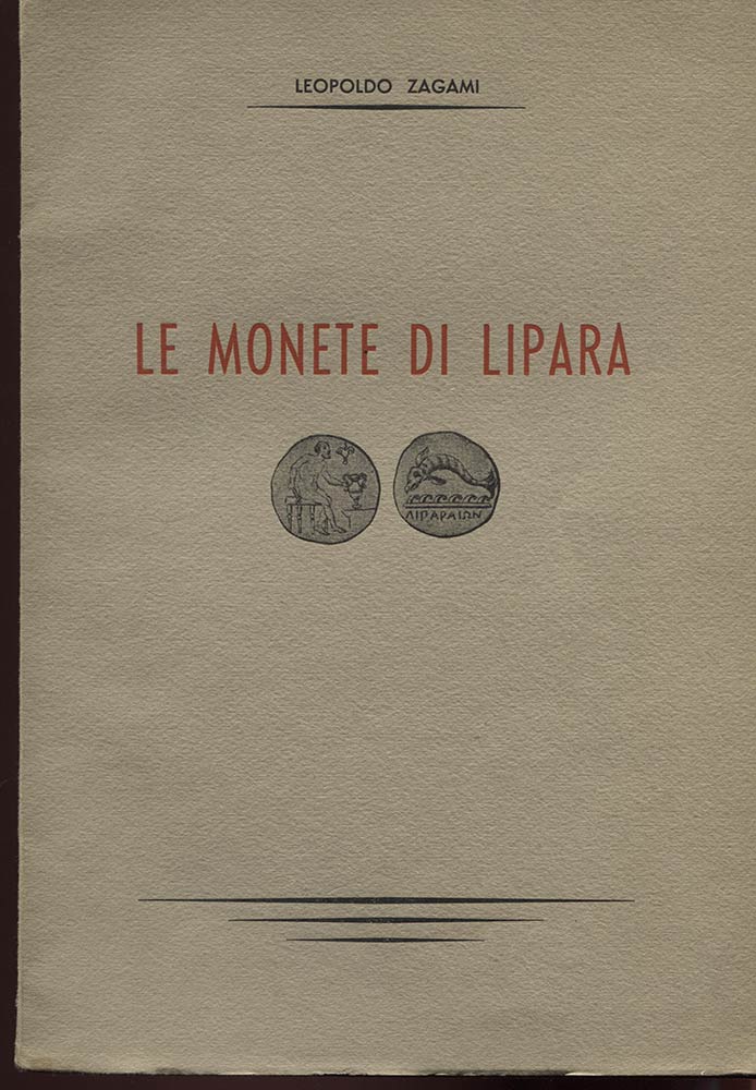 ZAGAMI L. – Le monete di Lipara. Messina, 1959. Pp. 57, tavv. 14 + ill. nel testo. Ril. ed. Buono stato, raro