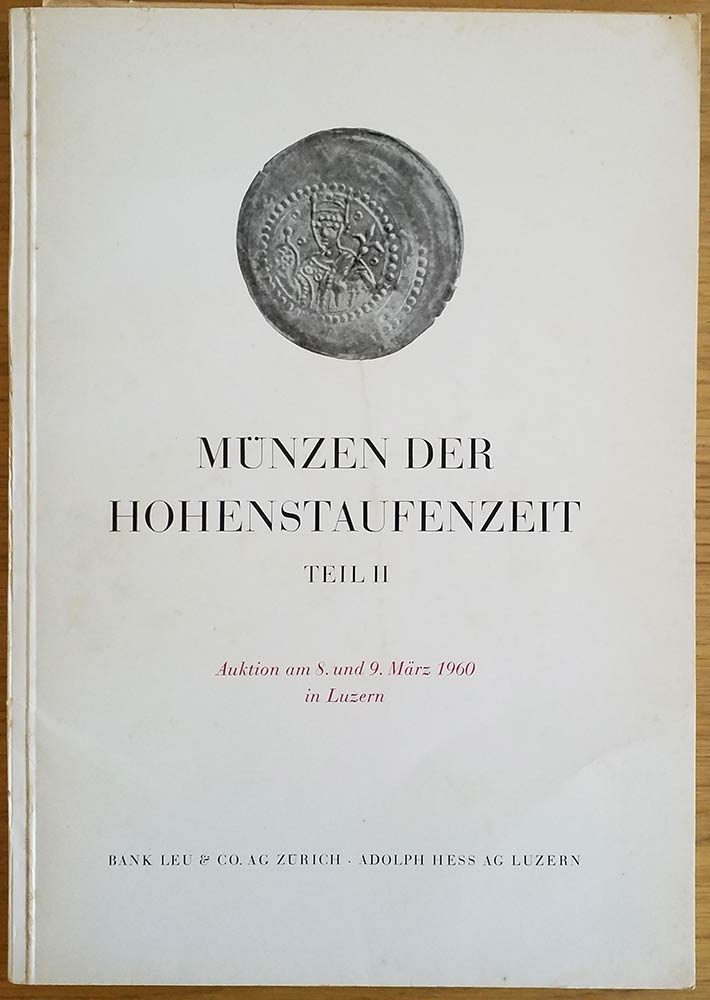Bank Leu – Hess A. Munzen der Hohenstaufenzeit, Sammlung eines Gelehrten. Teil II. Das Rheinland, Westfalen, Mittelrheingebiet, Oberlothringen, Das Elsass, Das Bodenseegebiet, Nordostschweiz, Baden, Ostschwaben, Franken und das Eg