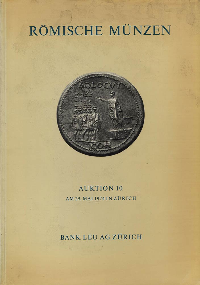 BANK LEU – Auktion 10. Romische munzen. Byzantinische munzen. Zurigo, 29 maggio 1974. Pp.54 + 30 tavv., nn. 488. Lista prezzi val. Ril.ed. Buono stato