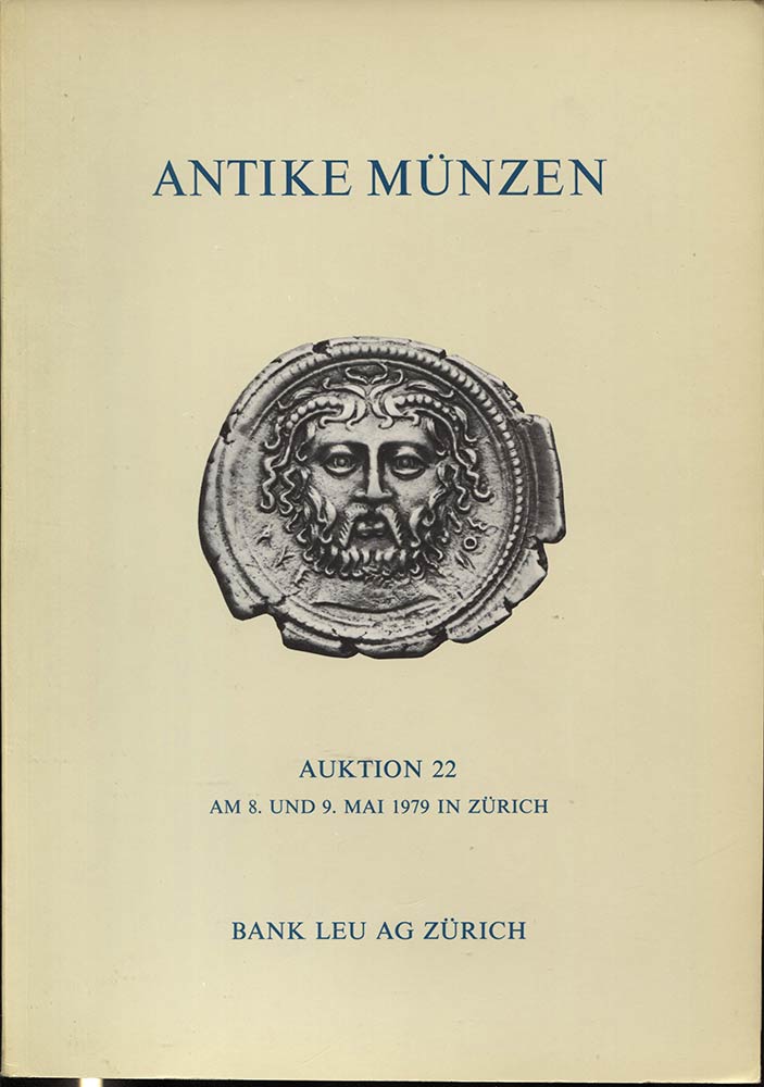 BANK LEU– Auktion 22. Antike munzen. Griechen Romer Byzantiner Literatur Uber antike numismatik. Zurigo, 8-9 maggio 1979. Pp.95 +35 tavv. Nn.624 Lista prezzi Val. Ril.ed. Buono stato