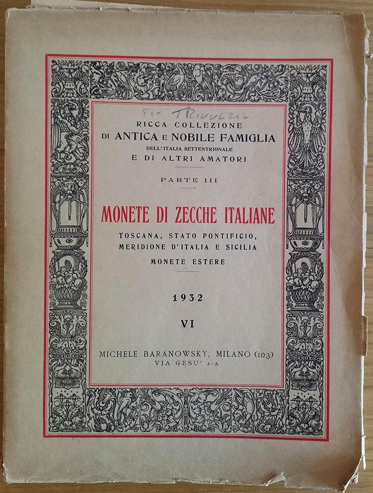 Baranowsky M. Ricca Collezione Numismatica di Antica e Nobile Famiglia dell' Italia Settentrionale e di altri Amatori. Parte Terza. Monete di Zecche Italiane, Toscana, Stato Pontificio, Meridione d'Italia e Sicilia. Monete Estere.