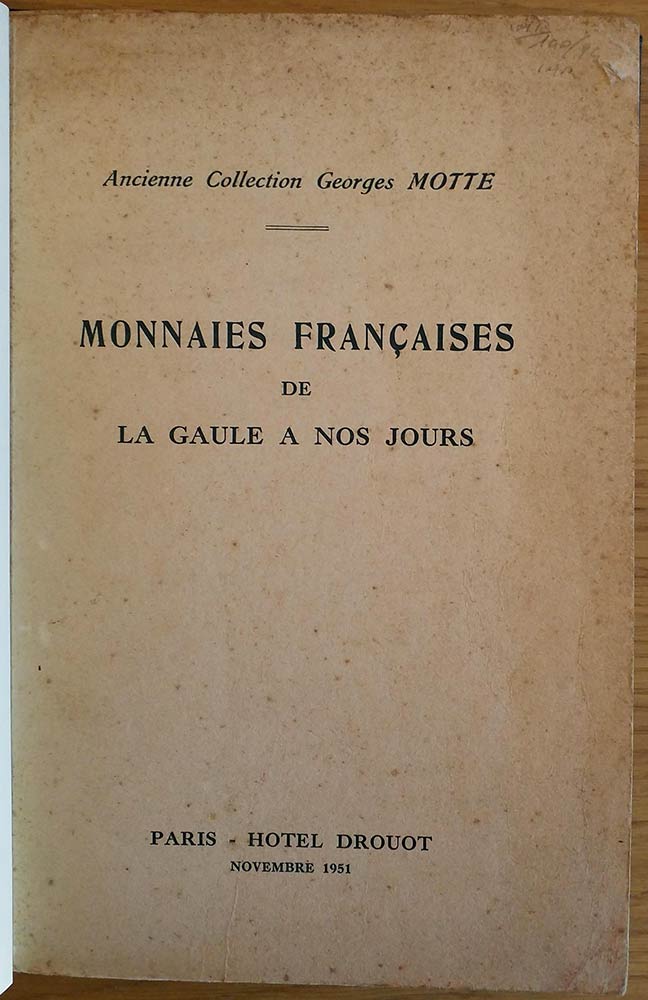 BOURGEY EMILE – Paris 12 / 15 – November. 1951. Ancienne collection Georges Motte. Tres importante collection de monnaies francaise de la Gaule a nos jours. pp. 48, nn. 998, tavv.12. l.p.a. ril./ pelle