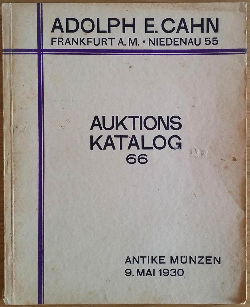 Cahn A.E. Katalog No. 66. Sammlung Antiker Munzen Griechen, Romer, Byzantiner und Barbaremunzen. 09 Mai 1930, Brossura ed. pp. 60, lotti 875, tavv. 24 in b/n. Con lista prezzi di stima. Buono stato