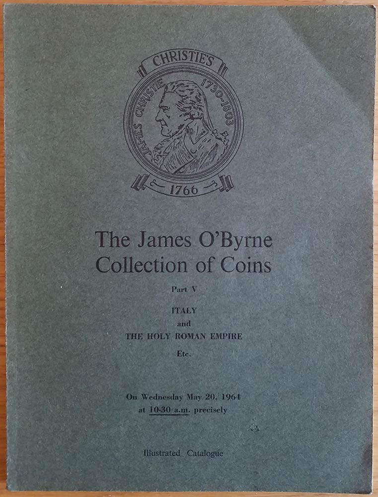 Christie's The James O'Byrne Collection of Coins Part V (Italy and The Holy Roman Empire Etc.) London 20 May 1964. Brossura ed. pp. 57, lotti 315, tavv. XVII in b/n. Buono stato