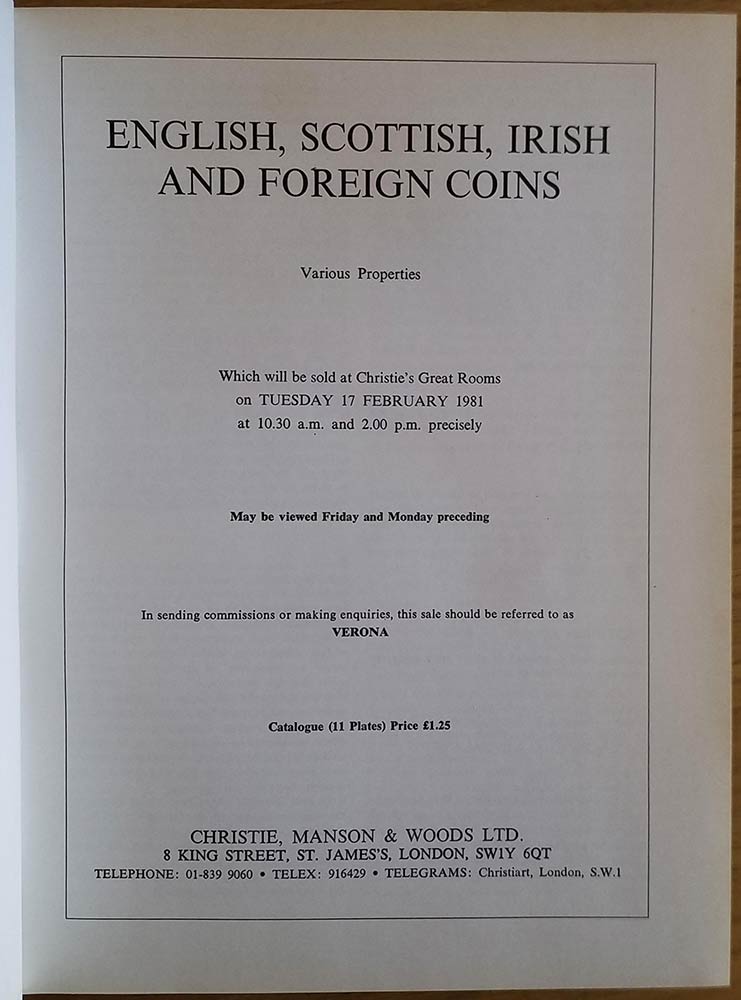 Christie's London Volume in Mezza Pelle con titolo in oro al dorso, contenente i seguenti cataloghi: 17 February 1981, 17 March 1981, 14 April 1981, 27 May 1981, 09 June 1981, 14 July 1981, 06 October 1981, 20-21 October 1981, 04
