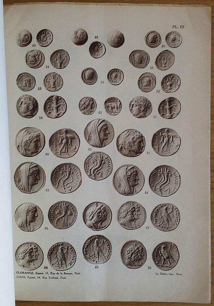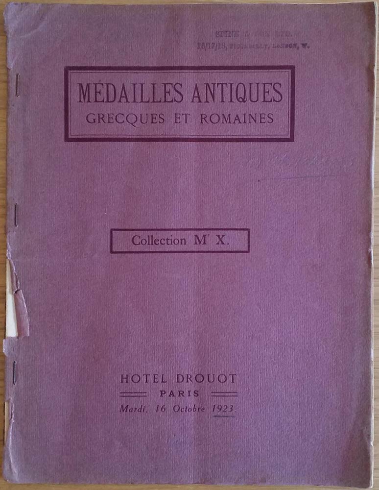 Florange M. J. Ciani M. L. Collection de M.X. Medailles Antiques Grecques et Romaines. 16 Octobre 1923. Brossura ed. pp. 18, lotti136, tavv. VI in b/n. Piccole mancanze al dorsetto. Buono stato.