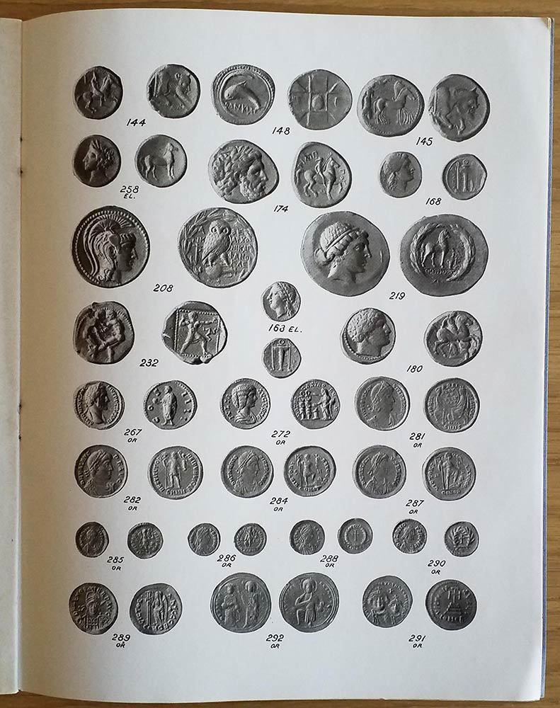 Florange M. J. Ciani M. L. Catalogue des Monnaies Grecques et Romaines, composant la Collection Caron. 10 Fevrier 1926. Brossura ed. pp. 31, lotti 301, tavv. 2 in b/n. Buono stato.