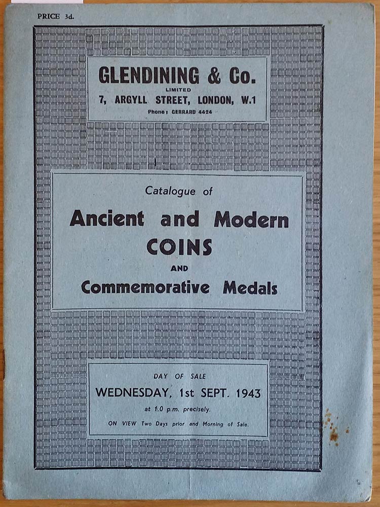 Glendening & Co. Catalogue of Ancient and Modern Coins and Commemorative Medals. London 01 September 1943. Brossura ed. pp. 15, lotti 245. Buono stato