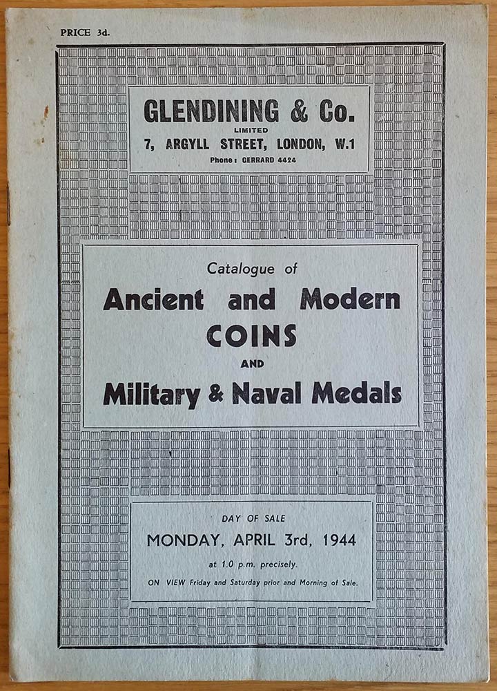 Glendening & Co. Catalogue of Ancient and Modern Coins and Military & Naval Medals. London 03 April 1944. Brossura ed. pp. 17, lotti 253. Buono stato