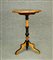 Firmato, datato. Tavolino con piano in radica intarsiato, gamba centrale...