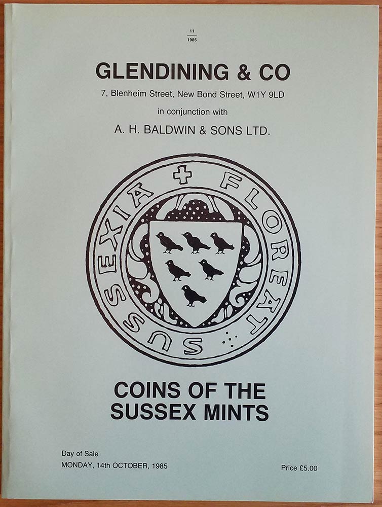 Glendening & Co. In Conjunction with A.H. Baldwin & Son. Catalogue of A Collection of Coins of the Sussex Mints from Aethelred II to John.London 14 October 1985. Brossura ed. pp. 33, lotti 209, tavv. IX in b/n. Buono stato