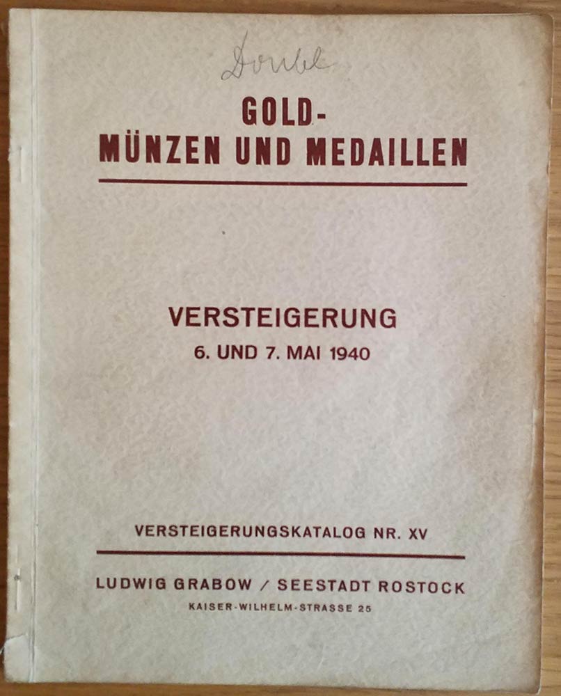 Grabow L. Gold-Munzen und Medaillen aus dem Besitz von A. 06-07 Mai 1940. Brossura ed. pp. 36, lotti 736, tavv. 15 in b/n. Con lista prezzi. Note a matita dei prezzi di realizzo. Buono stato