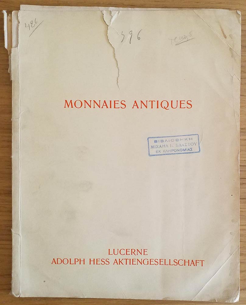 Hess A. Catalogue de Monnaies Grecques et Romaines. Cesaree de Cappadoce La Collection de le M. le Rev. Edward A. Sydenham. Monnaies Grecques d' un amateur renoncant a une partie de sa Collection. Monnaies Grecques et Romaines d