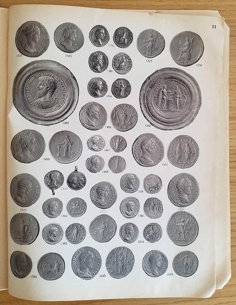 Hess A. Catalogue de Monnaies Grecques et Romaines. Cesaree de Cappadoce La Collection de le M. le Rev. Edward A. Sydenham. Monnaies Grecques d' un amateur renoncant a une partie de sa Collection. Monnaies Grecques et Romaines d un amateur Etrager. Monnaies Romaines de la Collection Franz Trau. 28 Avril 1936. Brossura ed. pp. 75, lotti 2860, tavv. 16 in b/n. Con lista prezzi di stima. Strappo marginale in copertina. Buono stato