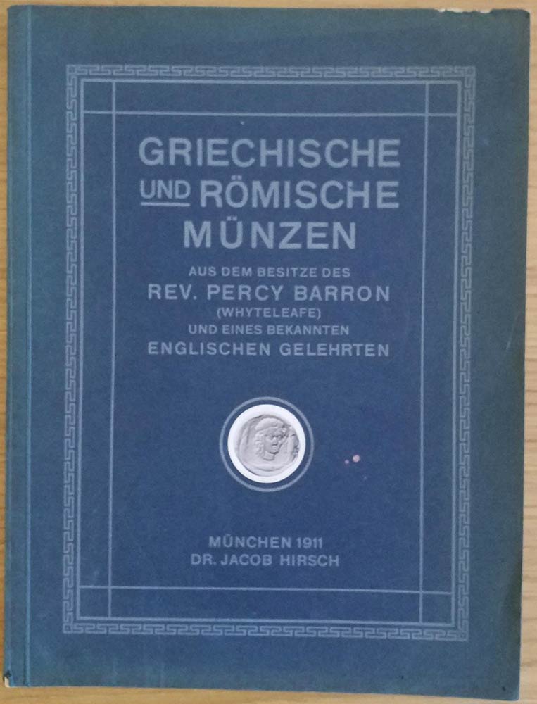 Hirsch J. No. XXX Griechische und Romische Munzen aus dem Besitze des Rev. Percy Barron ( Whyteleafe) und eines bekannten Englischen Gelehrten. 11 Mai 1911. Brossura ed.pp. 103, lotti 1298. Buono stato