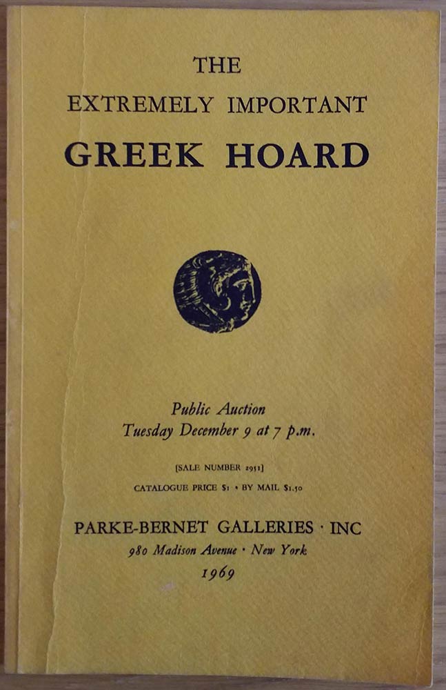 Parke-Bernet Galleries (affiliated with Sotheby & Co. Extremely Important Greek Hoard being Coins in Gold and Silver of Northern Macedonia. New York 09 December 1969. Brossura ed. pp. 24, lotti 278, tavv. 8 in b/n. Con lista prezzi di realizzo. Annotazioni a penna e a matita dei prezzi di realizzo. Buono stato