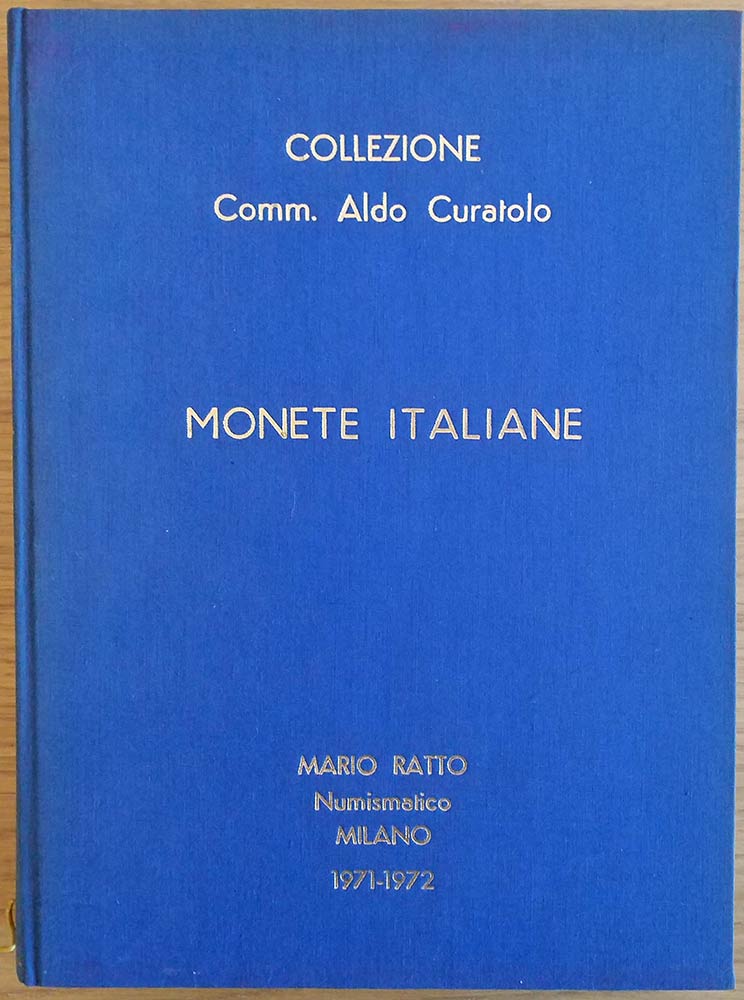 Lotto 2455 | Ratto M. Collezione Comm. Aldo Curatolo, Monete Italiane. Milano 1971-1972. 4 Cataloghi in un unico tomo. Tuttatela con titolo in oro al piatto e al dorso. I Catalogo Monete Italiane, dall invasione Napoleonica ai giorni nostri. C