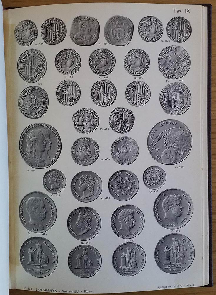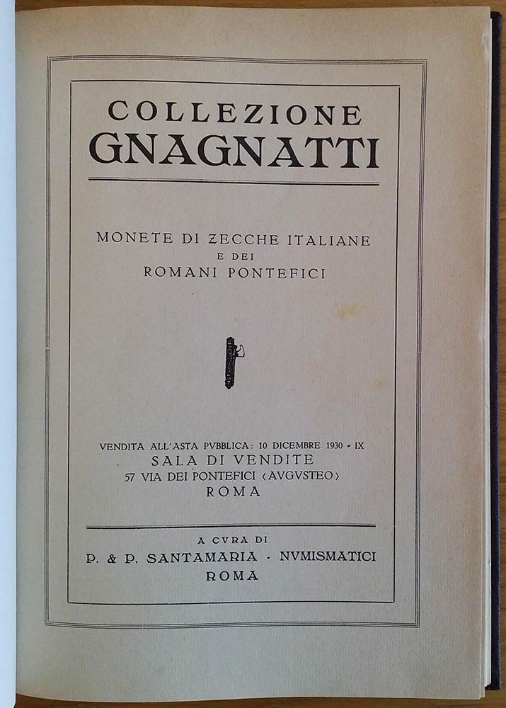 Santamaria P.& P. Collezione Gnagnatti. Monete di Zecche Italiane e dei Romani Pontefici. Roma 10 Dicembre 1930. Tuttatela pag. 93, lotti 1616, tavv. XXII in b/n. Note a penna dei prezzi. Buono stato.