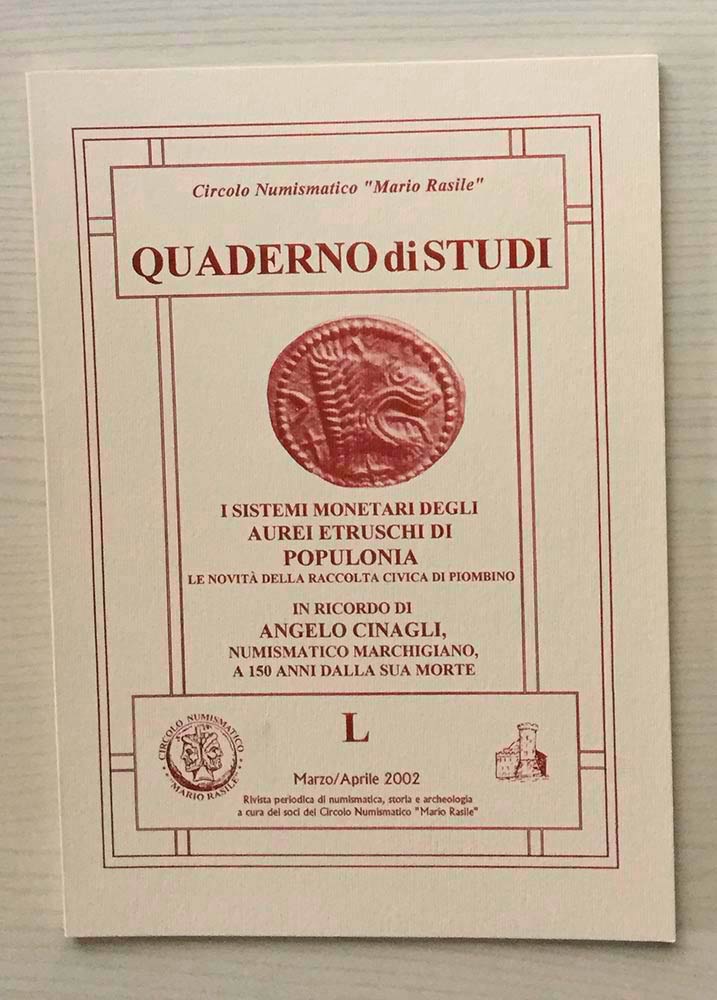 Circolo Numismatico “Mario Rasile” Quaderno di studi L, Formia, Marzo-Aprile 2002. I sistemi monetari degli Aurei Etruschi di Populonia, le novita' della raccolta civica di Piombino. In ricordo di Angelo Cinagli numismatico Marchi