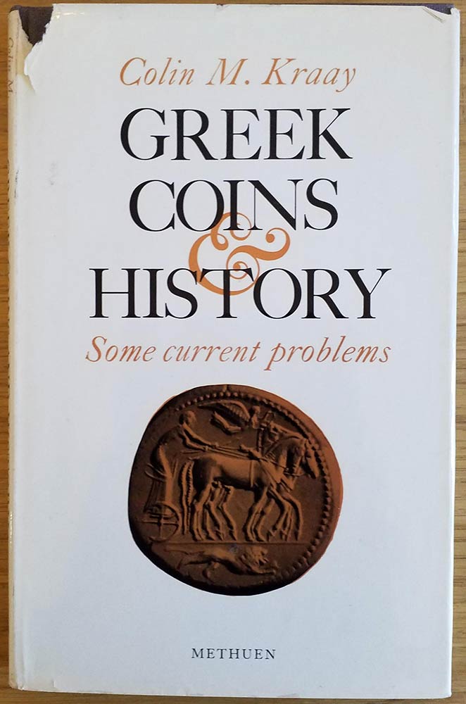 Kraay C.M., Greek Coins and History, some current problems. Methuen & Co, London 1969. Hardcover with jacket, 81pp., 8 b/w plates. Good condition, jacket damaged