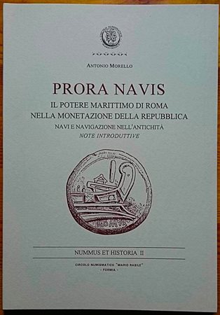 Morello A., Prora Navis. Il Potere Marittimo di Roma nella Monetazione della Repubblica; Navi e Navigazione nell’Antichità; Note Introduttive. Nummus et Historia II, Circolo Numismatico “Mario Rasile”, Formia 1998. Brossura ed., 124pp., illustrazioni in b/n. Nuovo