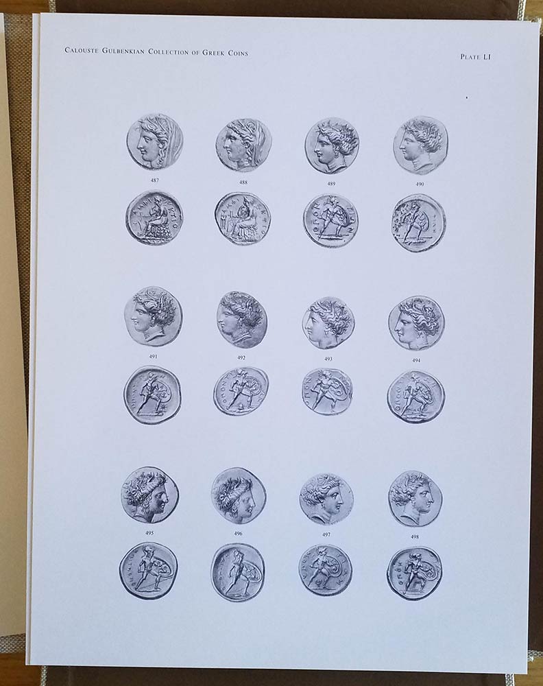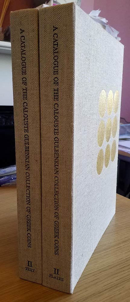 Robinson E.S.G., Castro M.H, Jenkins G.K., A catalogue of the Caoluste Gulbenkian of Greek coins, I, Italy-Sicily-Carthage, Lisbon 1971, 2 vol., 136pp., 42 plates. Good condition