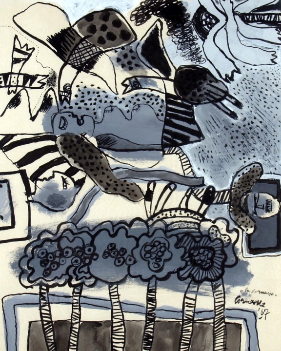 CORNEILLE (Liegi 1922) "La dormeuse" 1967 Tecnica mista su carta cm. H: 41.00...