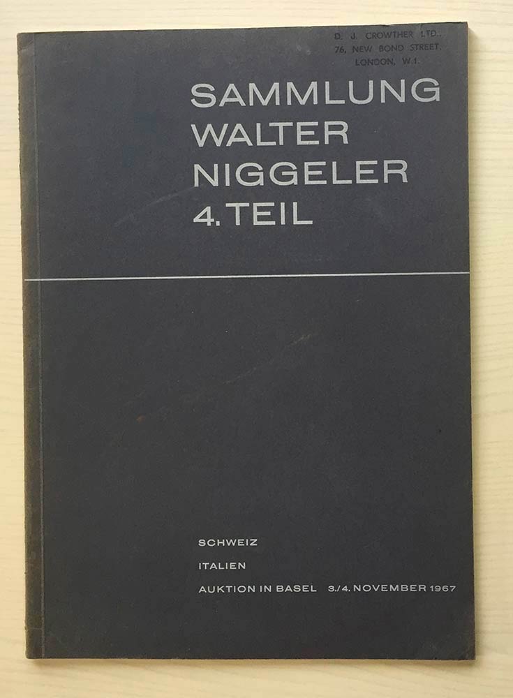 Bank Leu and Munzen und Medaillen Sammlung Walter Niggeler Schweiz Italien Teil 4. Basel 03-04 November 1967. Brossura ed. pp. 28, lotti 250, tavv. 24 in b/n. Con lista prezzi di stima e di realizzo. Buono stato.