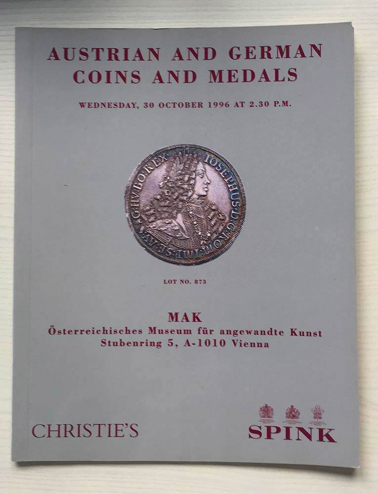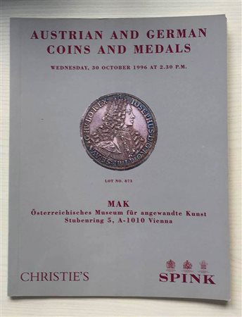 Christie's in association with Spink Austrian and German Coins and Medals. Vienna 30 October 1996. Brossura ed. pp. 38, lotti da 801 a 1045, tavv. In b/n. Buono stato.