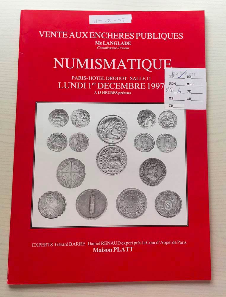 Maison Platt Numismatique Paris 01 Decembre 1997. Brossura ed. pp. 566, ill. in b/n. Ottimo stato.