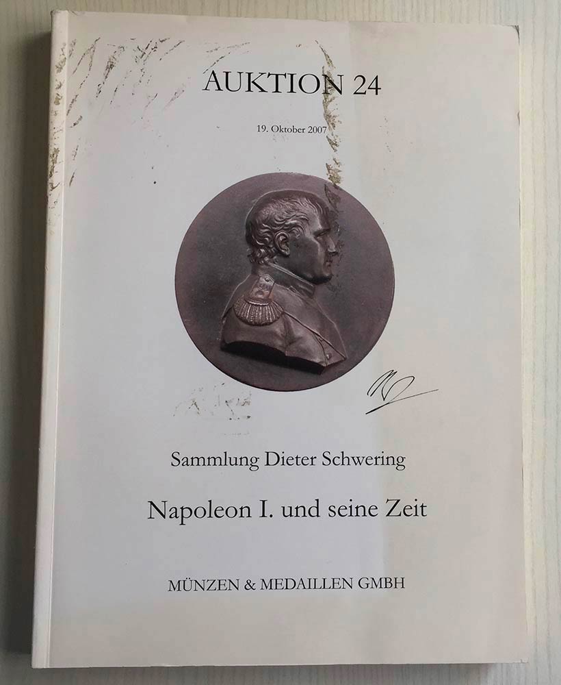 Munzen & Medaillen Auktion 24. Sammlung Dieter Schwering Napoleon I und seine Zeit. Stuttgart 19 Oktober 2007. Brossura ed. pp. 335, lotti 2040, ill. in b/n. Discrete condizioni.