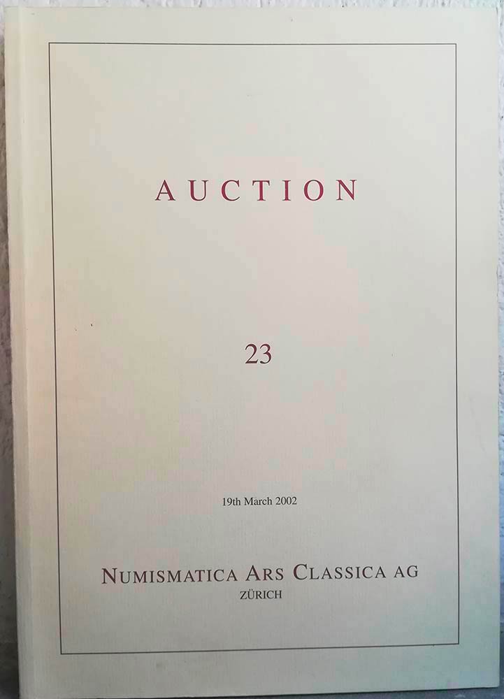 Nac – Numismatica Ars Classica. Auction no. 23. Greek, Roman and Byzantine Coins. Zurich 19 March 2002. Brossura ed. pp. 171, lotti 753, tavv. XXXII a colori, ill. In b/n. Buono stato.