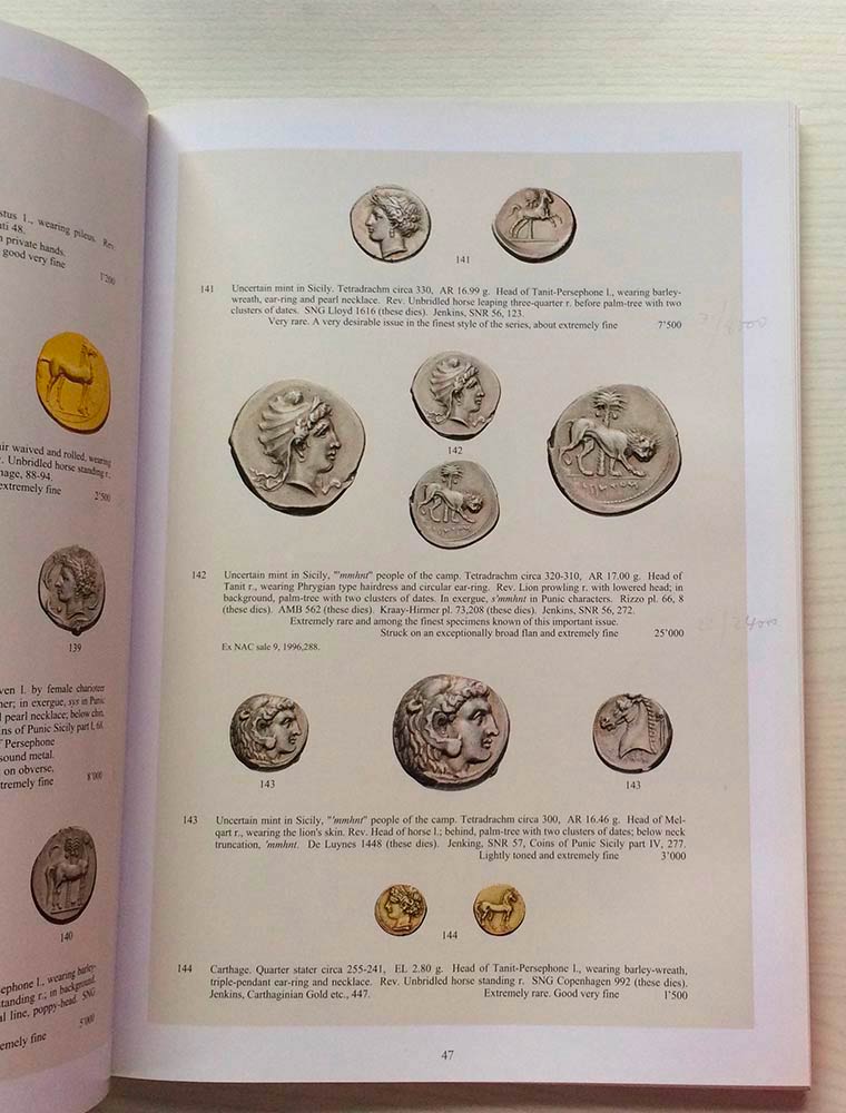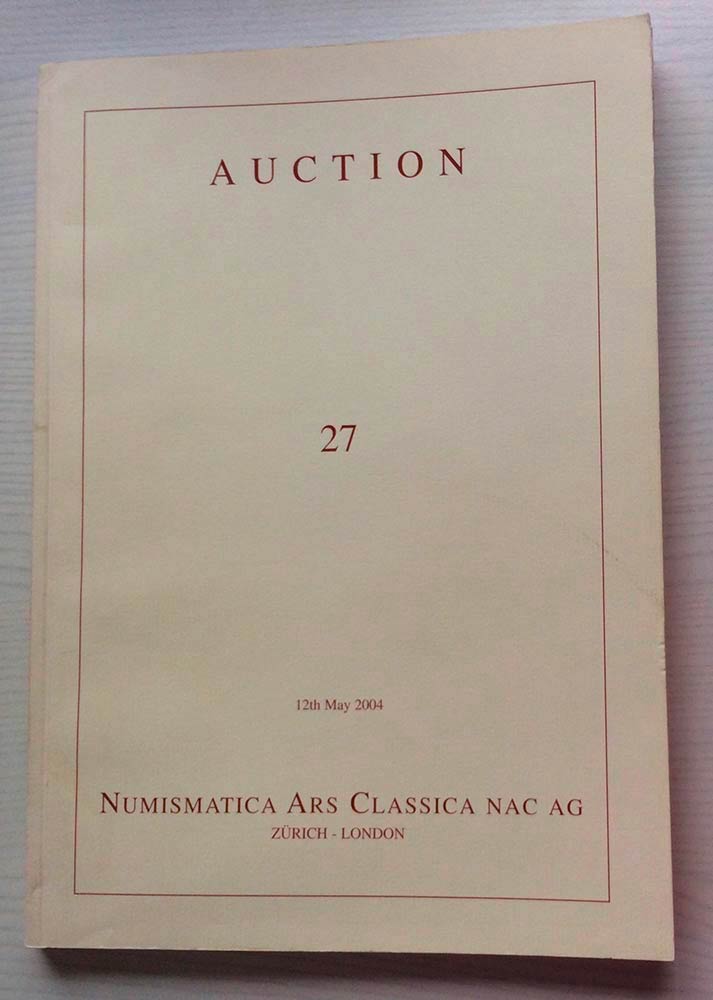 Nac – Numismatica Ars Classica. Auction no. 27. Greek, Roman & Byzantine Coins. Zurich 12 May 2004. Brossura ed. pp. 156, lotti 555, ill. a colori. Alcune note a matita dei prezzi di realizzo. Buono stato.