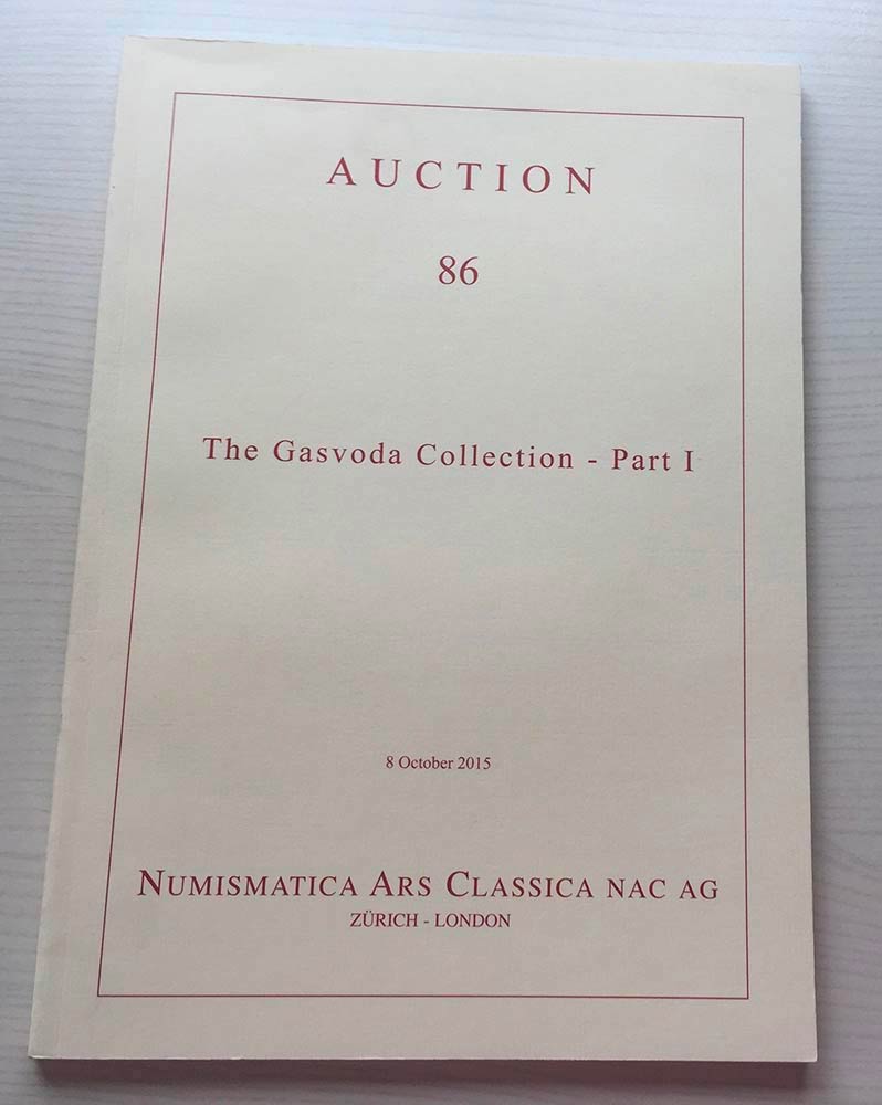 Nac – Numismatica Ars Classica. Auction no. 86 The Gasvoda Collection Part I. Zurich 08 Octobre 2015. Brossura ed. pp. 96, lotti 191, ill. A colori. Ottimo stato
