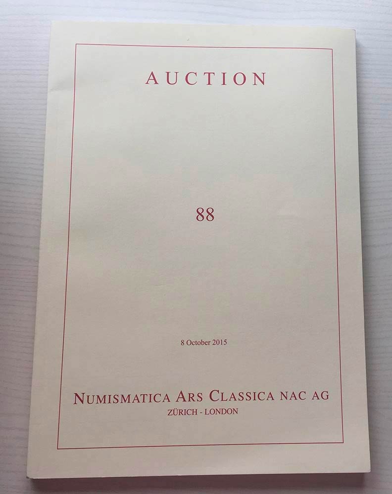 Nac – Numismatica Ars Classica. Auction no. 88. Greek, Roman and Byzantine Coins. Zurich, 8 October 2015. Brossura ed., pp. 117, lotti 357, ill. a colori. Ottimo stato