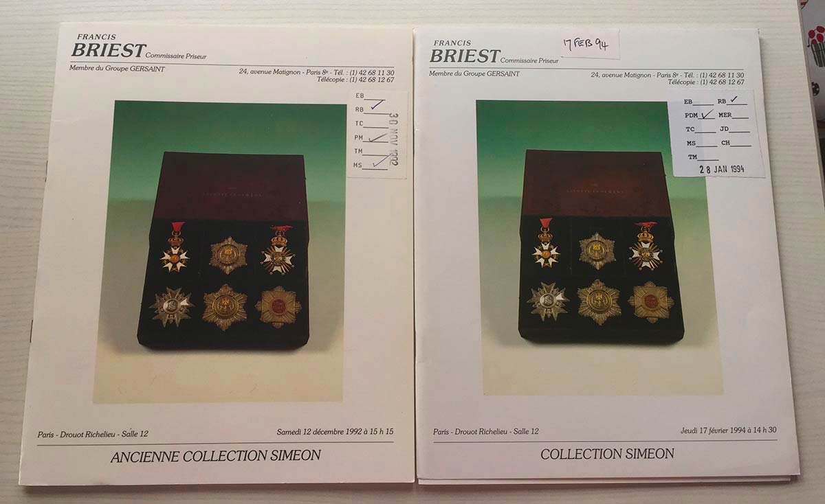 Platt M. Renaud M.D. 2 Cataloghi. 1) Ancienne Collection Simeon. Paris 12 Decembre 1992. Brossura ed. pp. 35, lotti 211, ill. in b/n, 2) Collection Simeon. Paris 17 fevrier 1994. Brossura ed, pp. 35, lotti 211, ill. in b/n. Ottimo stato
