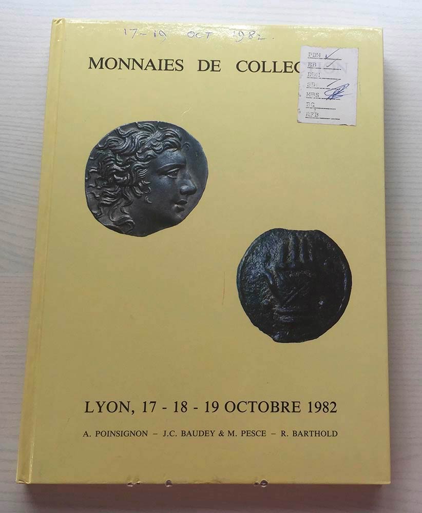 Poinsignon A. Baudey J.C. Pesce M. Barthold R. Monnaies de Collection. Lyon 17-18-19 Octobre 1982. Cartonato ed. pp. 253, lotti 1900, ill. in b/n. Buono stato