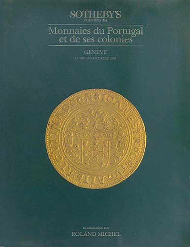 SOTHEBY'S (in collaboration with Roland MICHEL). Geneve 10/11/1986. Monnaies du Portugal et de ses colonies. Editorial binding, pp. 99, lotti 609, tavv. 1 color + ill. b/w. Aggiudicazioni. importante collezione