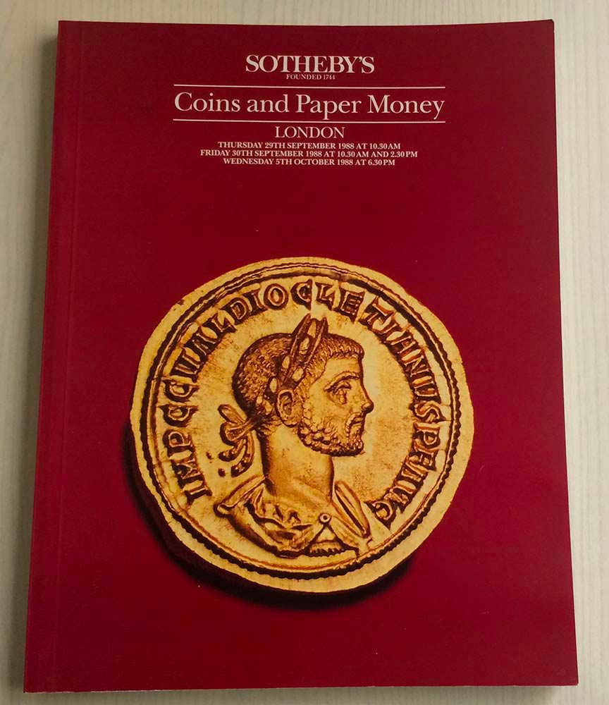 Sotheby's Coins and Paper Money. London, 29 September - 5 October 1988. Brossura ed. lotti 1044, tavv. In b/n.