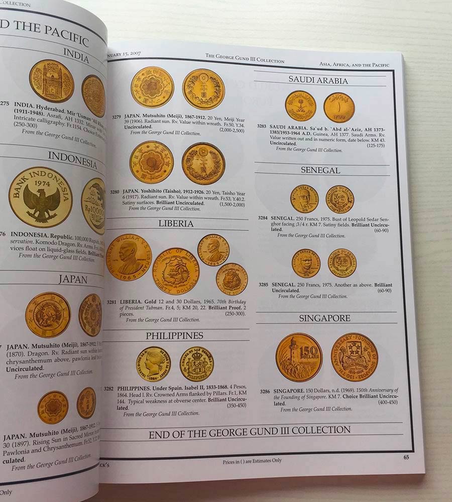 Stack's United States Gold Coins from The American Numismatic Society Collection 101 Die Duplicates. New York. 11 January 2007. Brossura ed. pp. 59, lotti da 2001 a 2101, ill. a colori. Ottimo stato.