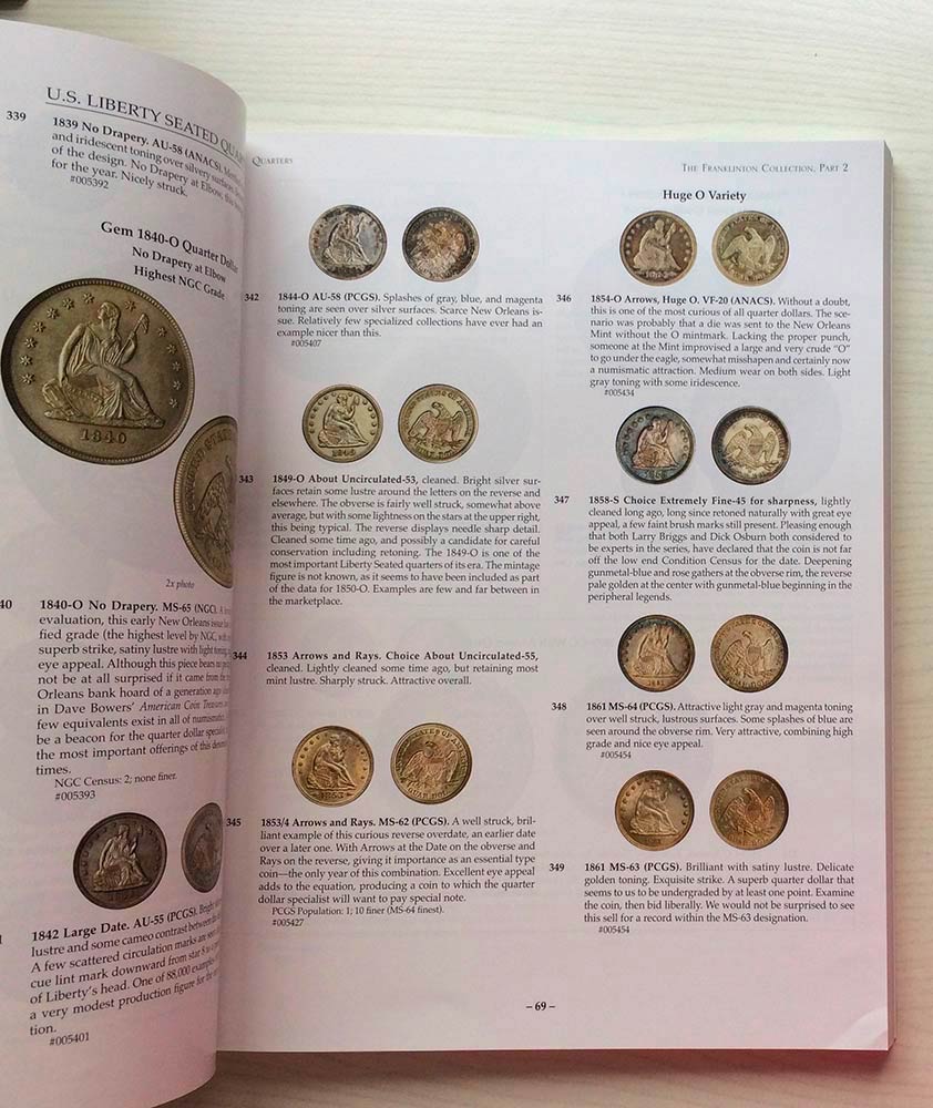 Stack's The Franklinton Collection Part. 2 and other Important Properties. 07 January 2008. Brossura ed. pp. 280, lotti 1325, ill. a colori. Ottimo stato