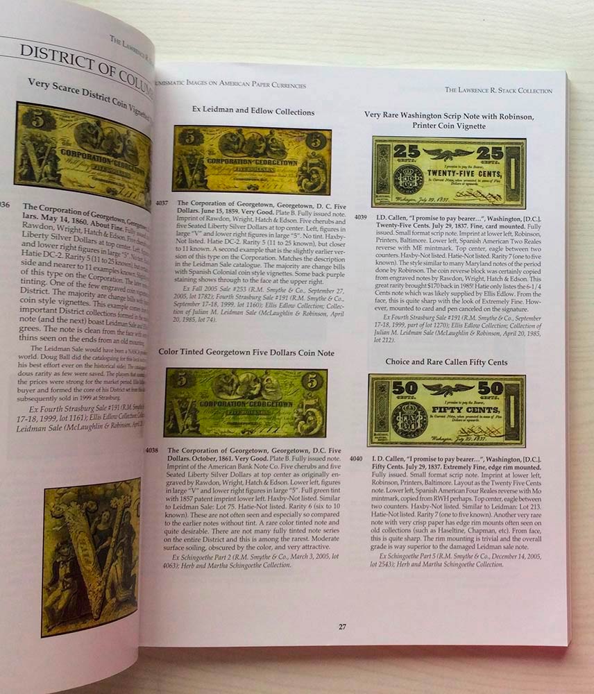 Stack's Numismatic Images on America Paper Currencies The Lawrence R. Stack Collection. New York 15 January 2008. Brossura ed. pp. 189, lotti da 4001 a 4533, ill. a colori.Ottimo stato